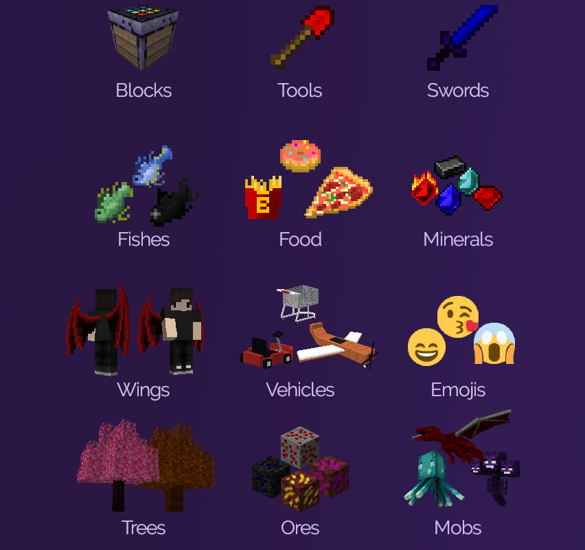 - Добавляйте триггеры, команды, события к своим пользовательским предметам, блокам, транспортным средствам, шляпам, блокам, технике …